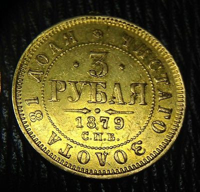 Alexander II Gold 3 Roubles 1879 CПБ-HФ Russian Empire - EXTREMELY RARE!